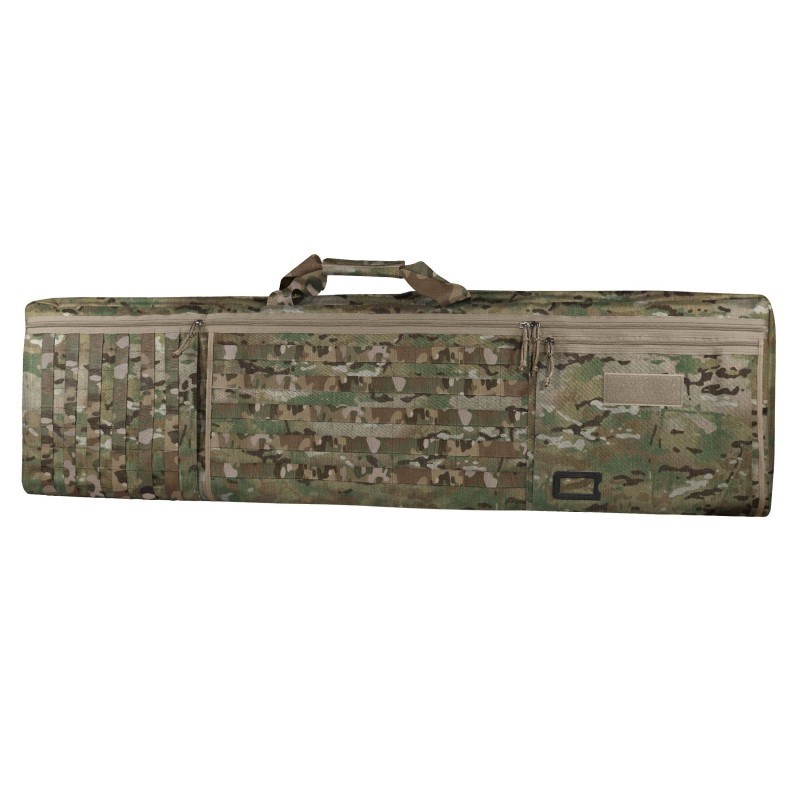 Очередной интересной новинкой является современный кейс под снайперскую винтовку, предназначенный для переноски и хранения снайперской винтовки или другого длинноствольного оружия. Мы производим чехлы различной длины. Это, а также особенности конструкции позволяют подобрать аксессуар практически под любую винтовку. Конструктивные особенности кейса под снайперскую винтовку Прямоугольный чехол изготовлен из прочного износостойкого и водоотталкивающего синтетического материала. С трех сторон периметра он закрывается застежками, что позволяет при необходимости полностью откинуть крышку и получить максимально комфортный доступ к тому, что находится внутри. Производитель предусмотрел два способа переноски: в руке за ручку, расположенную на боковом торце, и при помощи наплечных ремней. При этом ремни убираются в специальные карманы на тыльной стороне чехла, поэтому когда они не нужны, не мешают. Наплечники выполнены толстыми и довольно жесткими, благодаря чему вес снаряженного чехла равномерно распределяется по плечам, отчего они не так сильно устают. Примерно две трети наружной стороны чехла обшиты стропами интерфейса M.O.L.L.E., что позволяет навешивать на него различные модули. Это, а также наличие сразу трех больших карманов снаружи и большой внутренний объем позволяют использовать чехол с навесными подсумками в качестве неплохого вместительного рюкзака. Внутри кейс под снайперскую винтовку и вовсе поражает многофункциональностью, поскольку там умещается не только оружие, но и много всего другого. Винтовка крепится в чехле стяжными стропами в нескольких точках, что гарантирует ее неподвижность относительно аксессуара. Также внутри чехла вшита широкая лента велкро, к которой крепятся целых четыре подсумка, поставляемые в комплекте. К липучке можно крепить и другие аксессуары, такие как пистолетная кобура-вкладыш, аптечка или что-то другое. Наличие ряда подсумков в комплекте позволяет вам максимально комфортно хранить и носить с собой патроны, средства по уходу за оружием и все остальное. Уникальная особенность модели Очень интересный бонус от производителя – возможность превращения данного чехла в коврик для стрельбы. Для этого достаточно полностью раскрыть сам чехол, а потом достать из специального кармана и растянуть коврики, выполненные из все той же водонепроницаемой и удобной для лежки синтетики. Благодаря такому трюку площадь разложенного чехла становится вполне достаточной для того, чтобы на нем в положении лежа уместился человек крупной комплекции. Это особо ценно в плохую погоду, так как позволяет меньше мерзнуть и пачкаться. Габариты чехла: 135x30 см.