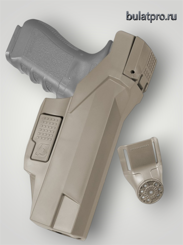 Новая модель имеет две точки фиксации: за спусковую скобу и заднюю часть затворной рамы пистолета.