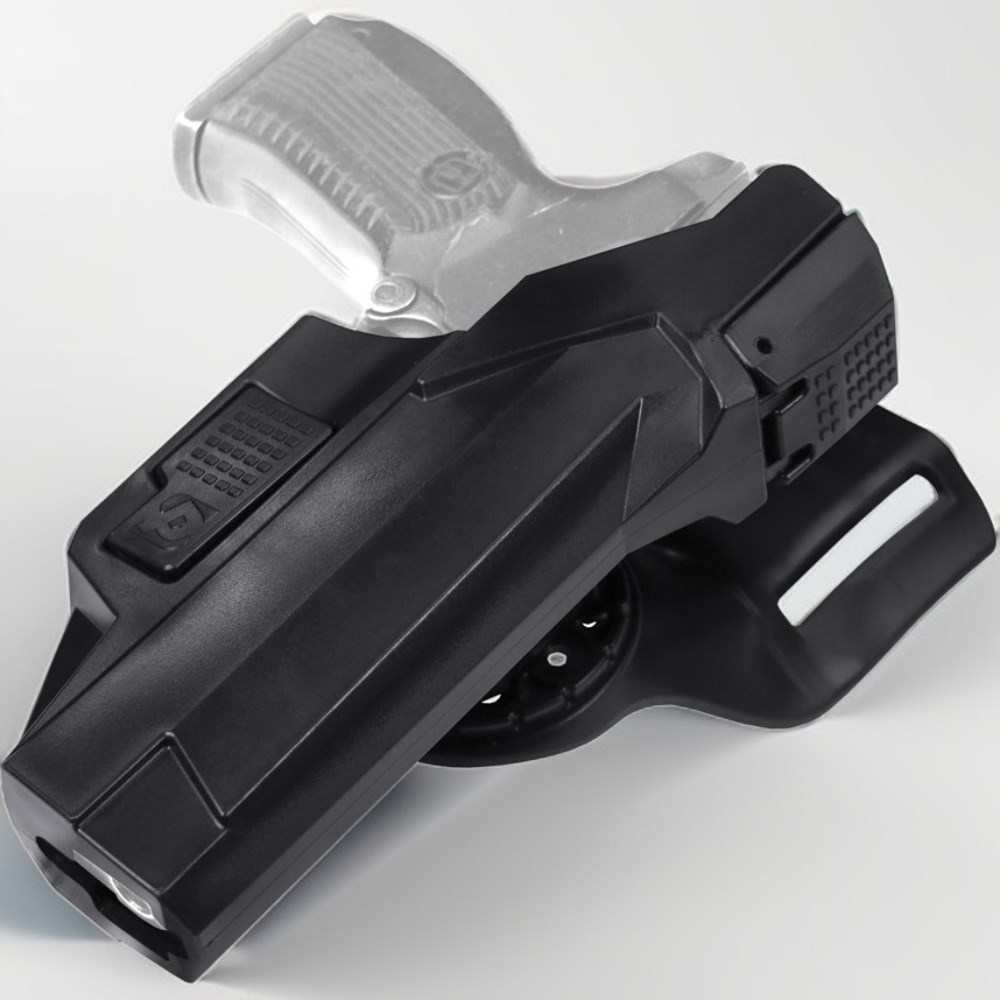 Наличие второй точки фиксации позволяет более надежно удерживать пистолет в кобуре, что защищает владельца от несанкционированного извлечения оружия. С другой стороны, наличие дополнительной точки фиксации не мешает быстро извлекать пистолет. Для этого достаточно одним щипковым движением большого и указательного пальца одновременно нажать на рычаг и кнопку удержания.
