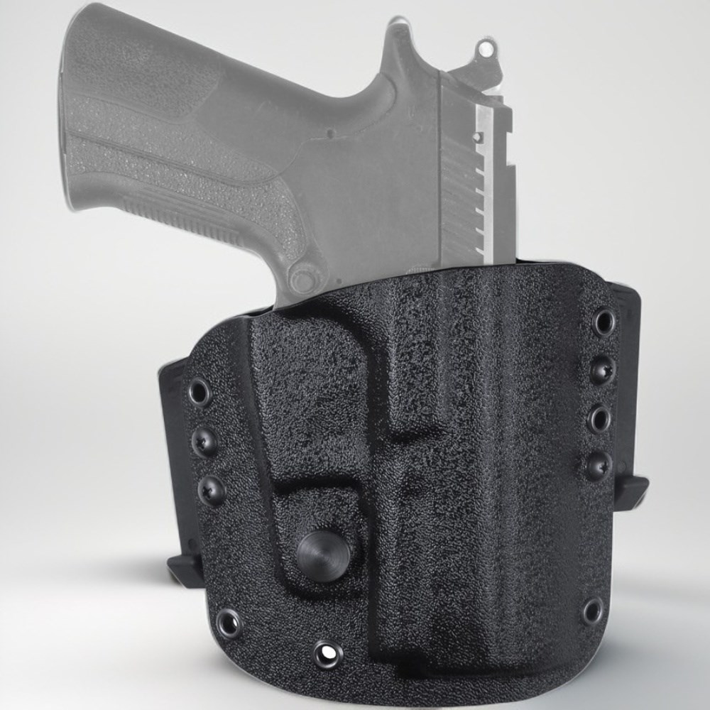 Пластиковая кобура "Скат" для травматического пистолета Grand Power T-10. Кобура ,предназначена для обеспечения безопасного хранения и ношения пистолета Т-10. Выполнена из ABS пластика, имеет жесткую формовку и надежно фиксирует пистолет внутри. Степень удержания ,пистолета регулируется с помощью регулировочного болта. Таким образом, вы можете настроить кобуру для скоростного извлечения, а также для максимально крепкого удержания вашего оружия. Для ношения кобуры на поясе предусмотрено специальное крепление открытого типа. Благодаря своей форме позволяет быстро разместить оружие на ремне. Также, крепления позволяют разместить кобуру и на снаряжении с MOLLE (варбелт, набедренная панель) Находящиеся на разном уровне отверстия для установки крепления дают возможность регулировать угол наклона и высоту расположения кобуры. Благодаря низкому профилю кобуры, ваше оружие не будет слишком явно выделяться при ношении его под одеждой. Вес: 150 грамм