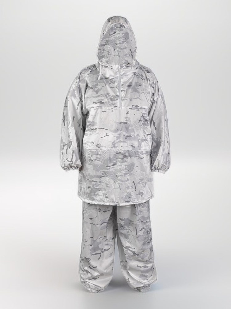 Простой и функциональный комплект. Куртка анорак увеличенного объёма,, рукав имеет углублённую пройму, что обеспечивает свободу движения, простоту одевания. Объемный капюшон обладает регулировкой при помощи шнура с фиксаторами. Рукава с эластичной манжетой. Шнур по низу куртки регулируется при помощи фиксаторов. Маскхалат рассчитан на применение поверх разгрузочной системы. Брюки свободного покроя, на поясе с эластичной тесьмой. Так же пояс дополнен прочным шнуром с фиксатором, что гарантирует надежную посадку на талии. Низ брюк дополнен манжетой для лучшей посадки и удобства эксплуатации изделия. Маскхалат складывается в небольшой чехол, который можно компактно разместить в вашем рюкзаке. Костюм обладает ветро-влагозащитными свойствами.