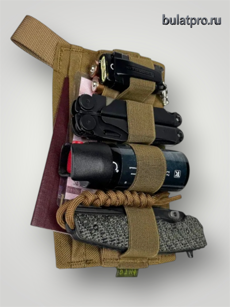 Размер органайзера 180 мм х 100 мм. Отрывной органайзер для мелочей — идеальное решение для тех, кто ценит порядок и быстрый доступ к вещам. Прочный материал - CORDURA 1000D, обеспечивает долговечность даже при активном использовании, а надежная липучка фиксирует его. Компактный формат легко помещается в рюкзак, поясную или дорожную сумку, не занимая много места.