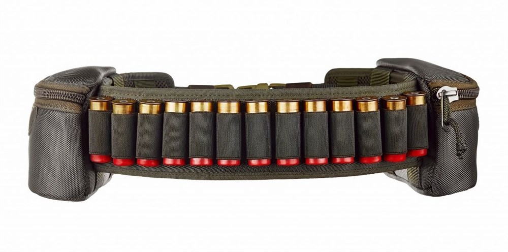 Застежка-молния усиленная, пыле-грязенепроницаемая, влагоотталкивающая. Гормошка под 13 патронов располагается посередине патронташа между подсумками, каждый из которых при необходимости может быть снят.