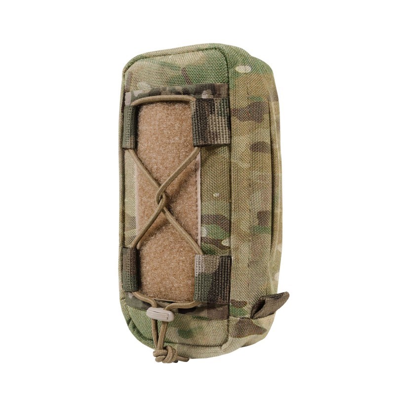 К рюкзаку и разгрузке данный подсумок крепится двумя застегивающимися на кнопки стропами M.O.L.L.E. Фронтальная сторона модели полностью прошита липучкой Велкро, что позволяет крепить к подсумку дополнительные аксессуары, которые будут держаться на липучке и стяжном эластичном шнурке.