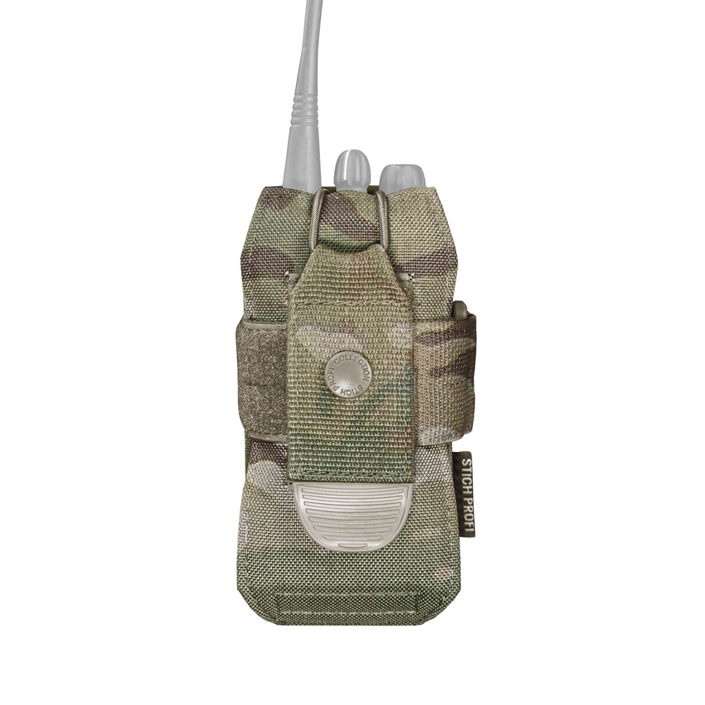 Универсальный подсумок для радиостанций. Предназначен для хранения и переноски индивидуальных радиостанций разных размеров, конструктивно представляет собой подсумок открытого типа с дополнительной страховкой содержимого при помощи узла из эластичного шнура, фиксируемого при помощи пряжки fast-tex. Открытая конструкция подсумка, благодаря сохранению свободного доступа к основным узлам управления радиостанцией, предполагает возможность её использования без извлечения из подсумка.