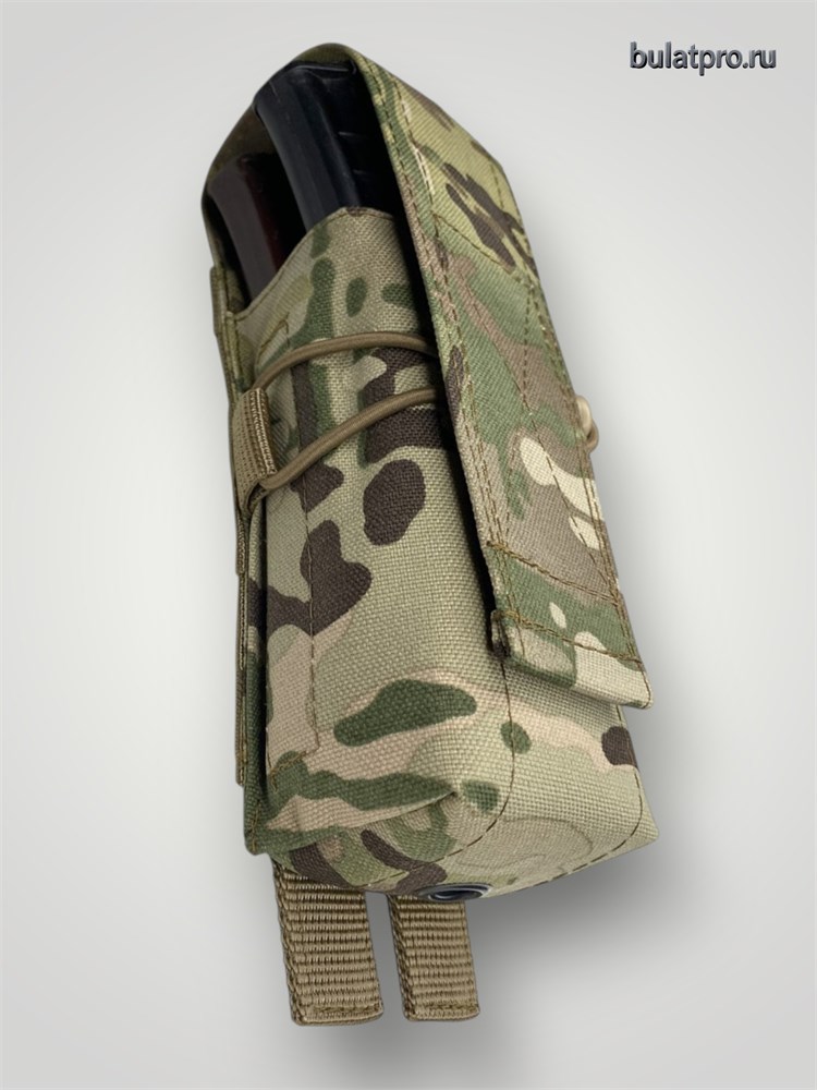 Подсумок с регулируемой высотой клапана на велкро, что дает возможность удобного размещения как двух магазинов АК.