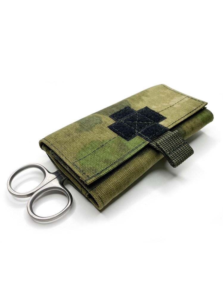 Подсумок имеет отделение под ножницы. Вмещает любые виды жгутов и турникетов. Удобный хлястик для открывания подсумка не цепляется за другое оборудование. Резинка, удерживающая турникет имеет 2 дополнительные петли для маркера или ХИС. Материал кордура 1000D с ик ремиссией.