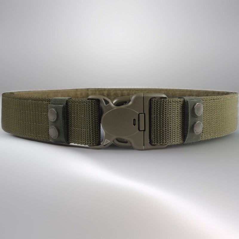 - Жесткость и 50мм ширина ремня допускает размещение на нем значительного веса (кобура с пистолетом, подсумки с боеприпасами и т.д.), вместе с тем, минимизирует силу давления ременной ленты на тело владельца.