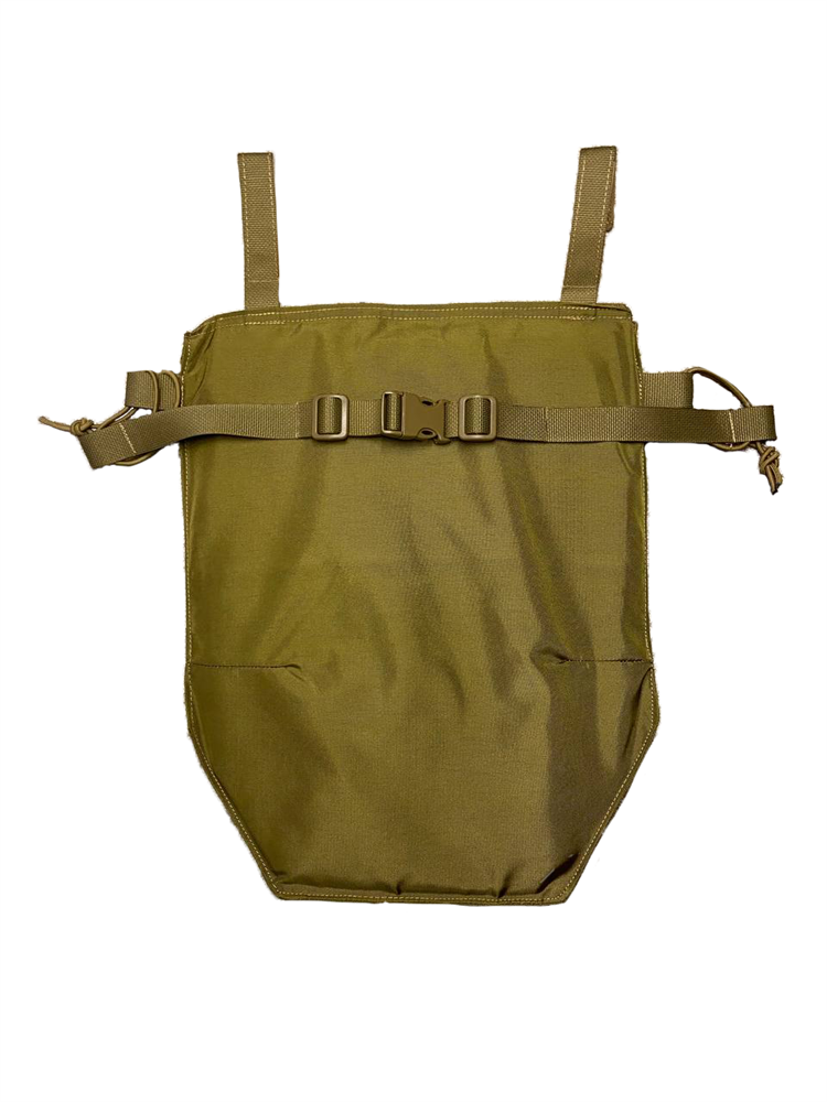 В сложенном состоянии используется как сидушка «пятиточечник», в разложенном - коврик для позиции лежа. Легко трансформируется из одного положения в другое, благодаря креплению на поясе и резинке, фиксирующей коврик в сложенном состоянии. Внутри находится вспененный полиуретан. А, также возможно установить противоосколочный пакет.