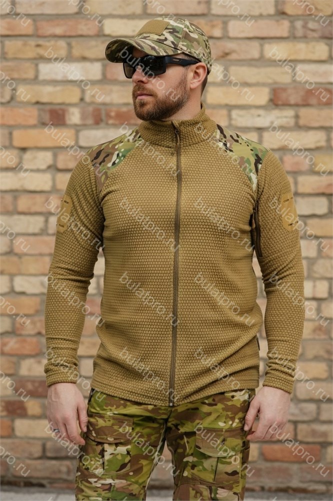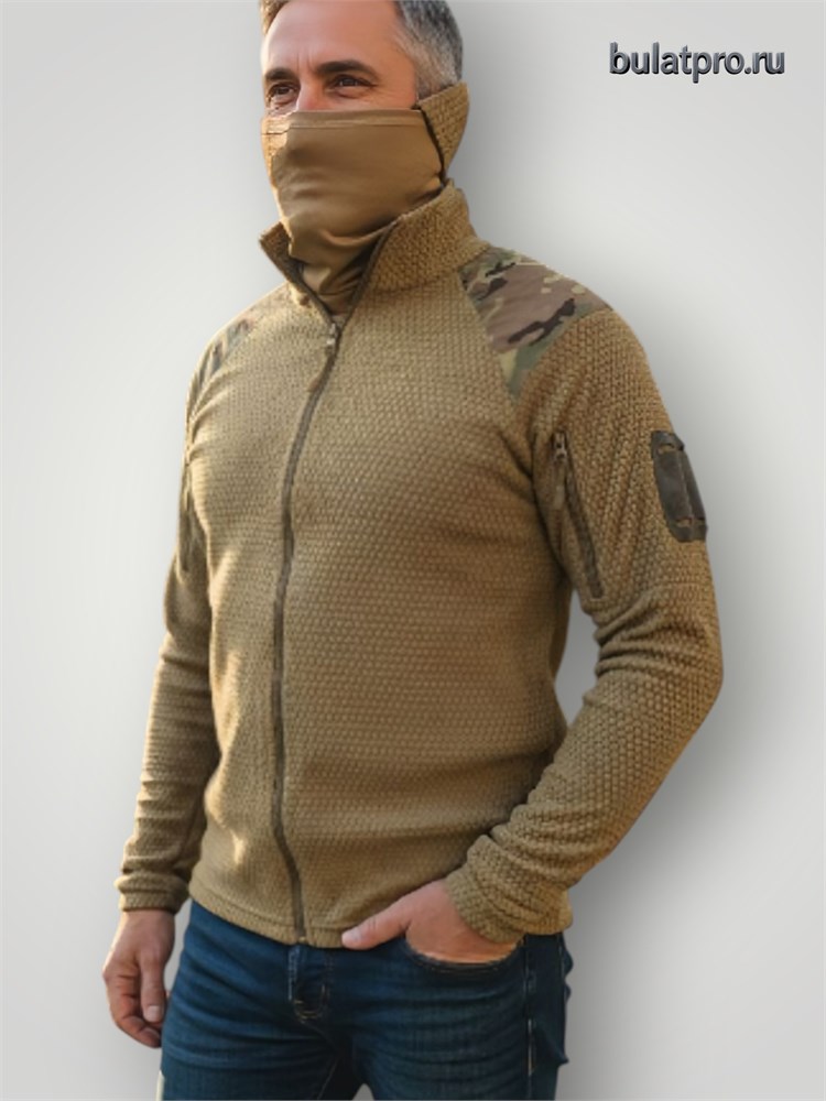 Флисовая кофта, сделанная из качественного и износостойкого флиса, устойчивого к скатыванию. Оснащена на рукаве карманом на молнии, двумя велкро панелями по обеим сторонам рук, воротник имеет стойку для защиты от ветра. Удобный крой и качество материалов и фурнитуры делают эту кофту повседневной и практичной одеждой. Локти и плечи усилены дополнительной защитой от износа. Материал: 100% полиэстер