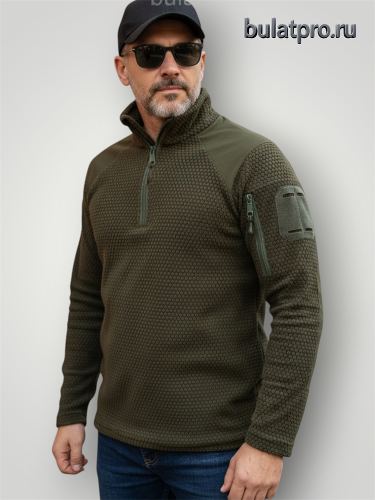 Флисовая кофта, сделанная из качественного и износостойкого флиса, устойчивого к скатыванию. Оснащена на рукаве карманом на молнии, двумя велкро панелями по обеим сторонам рук, воротник имеет стойку для защиты от ветра. Удобный крой и качество материалов и фурнитуры делают эту кофту повседневной и практичной одеждой. Локти и плечи усилены дополнительной защитой от износа. Материал: 100% полиэстер