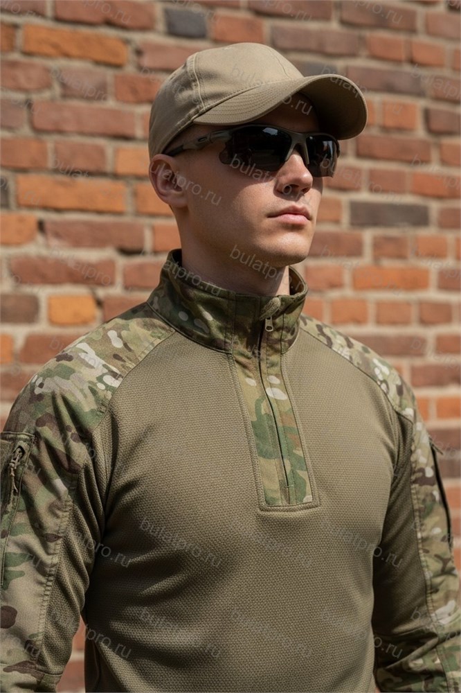 Боевая тактическая рубаха представляет собой гибрид полевого кителя и термобелья. Скомбинирована из различных по свойствам материалов. Тело рубахи выполнено из легкого, гигроскопичного и быстросохнущего трикотажа, а рукава из высокопрочного и износостойкого материала.